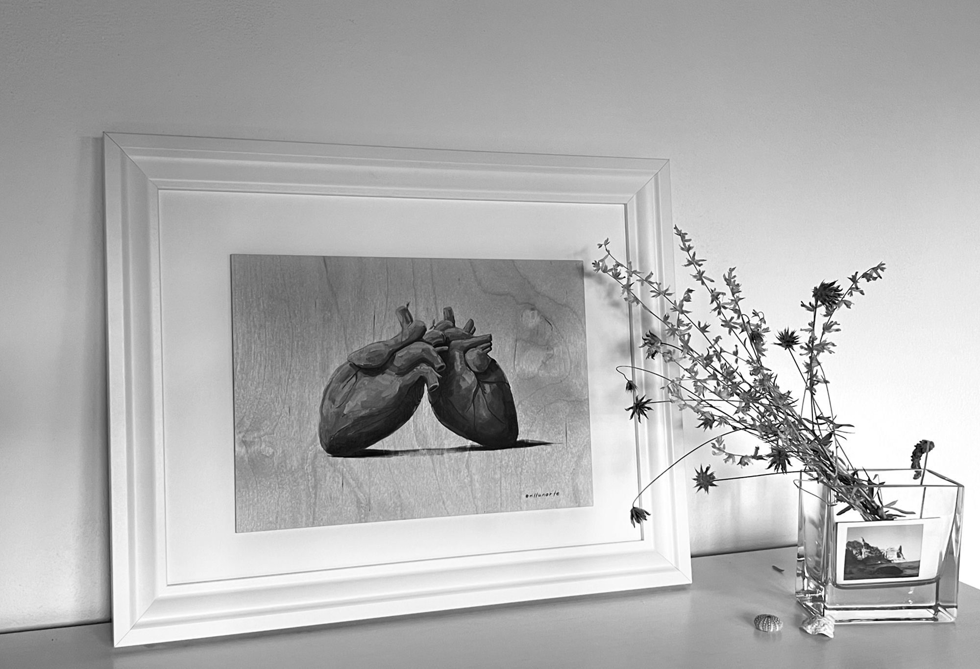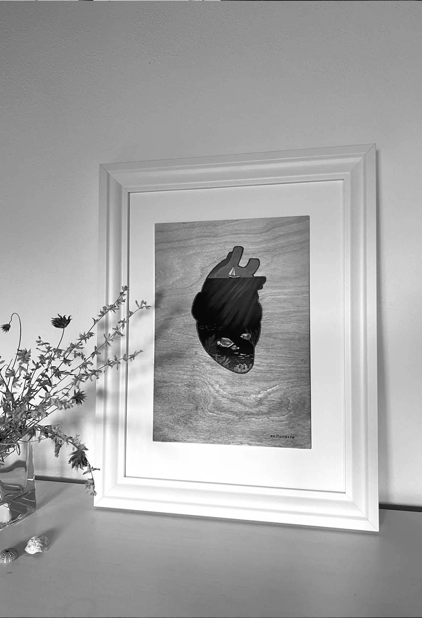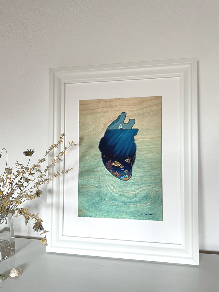 Al cor, que en castellano significa “en el corazón”, es un proyecto muy personal. Nace en una etapa en la que se mueven emociones creadas por la distancia respecto a mi lugar de origen, Mallorca, y todo lo que ello conlleva. Esta compuesto por una serie de cuadros que cuentan su historia de forma individual y que para mi tienen un significado global. Lo más bonito de este proyecto fue poder exponerlo en mi isla, en mi pueblo y que cada persona pudiera hacer su propia interpretación de los de cada uno de los cuadros. Es muy interesante escuchar lo que le evoca a cada persona y como cada mirada interpreta según sus propias experiencias.