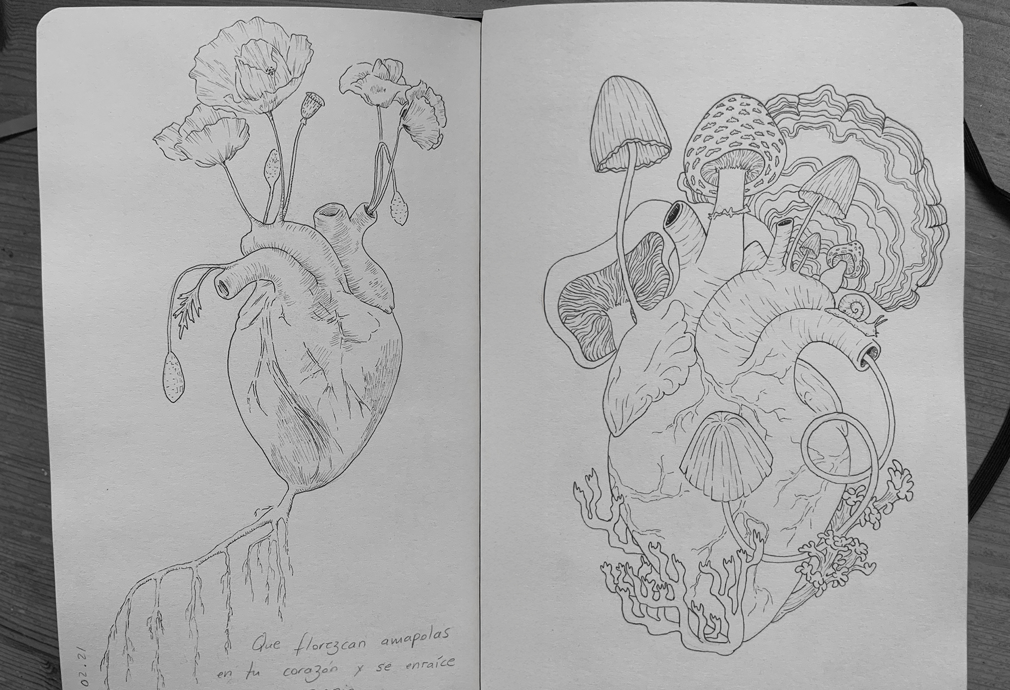 La naturaleza es un elemento que aparece mucho en las representaciones. La union entre mar y montaña es la característica principal y más bella de la isla, que a su vez vive en las personas que la habitan. El corazón es en si un elemento cargado de significado, un órgano que impulsa a vivir y sentir, en su forma real y no icónica.